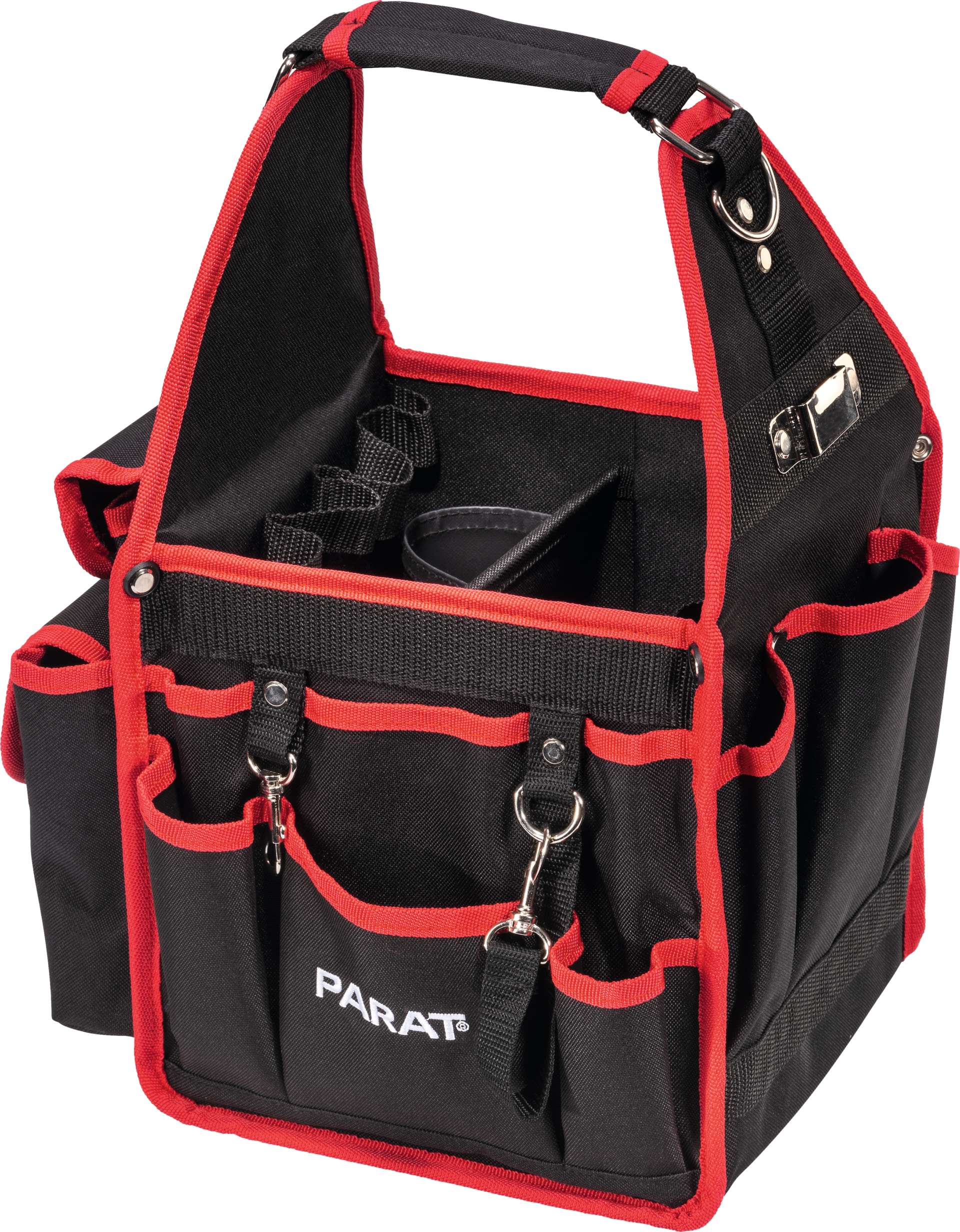 - 3 Einsteckfächern rechte Seite außen mit Metallbügel für Maßband